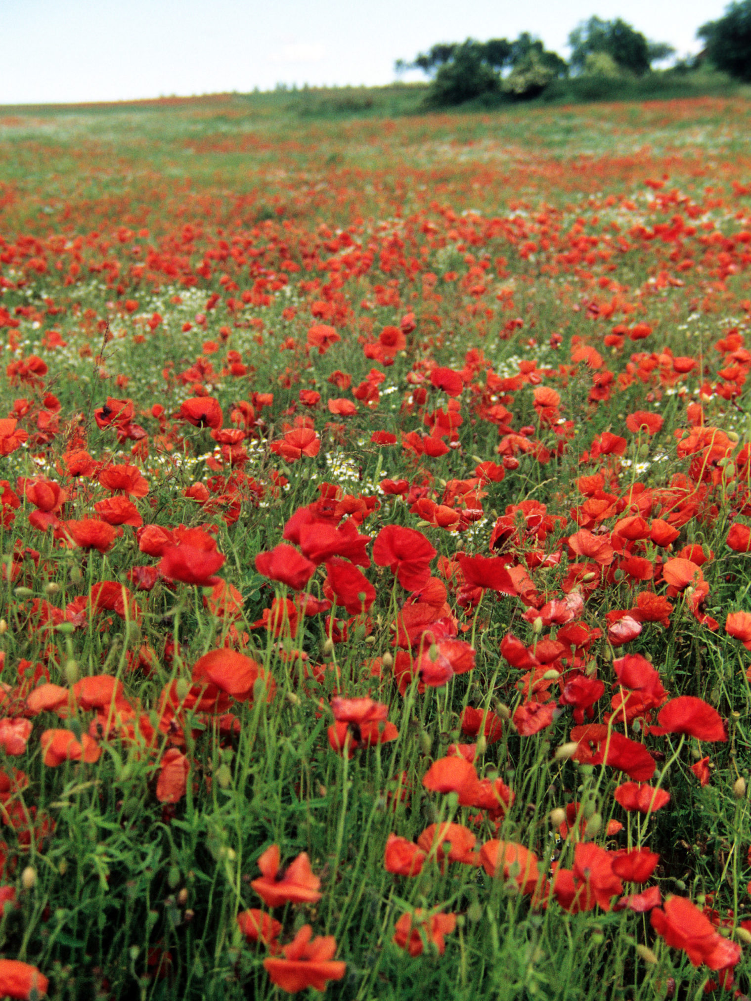 Im Evangelium geht es auch heute wieder, wie schon am vergangenen Sonntag, um das Säen. Diesmal ist von den guten und den schlechten Samen die Rede. Getreide und die unterschiedlichsten Beikräuter, zu Unrecht meistens als Unkraut bezeichnet, stehen auf den Feldern durcheinander. Und so ist es auch in unserer Kirche: Sie ist eine Kirche aus Sündern und Heiligen. Wo verläuft die Grenze? Gott lässt jeden seinen Weg gehen, er lässt auch Kräuter wachsen. Und oft erweist sich, dass das, was man früher als Unkraut bekämpft hat, auch seine guten Seiten und seine Schönheiten hat. Man muss es nur sehen und erkennen. So ist es auch mit dem Mohn, den das Bild (siehe oben) zwischen dem Weizen zeigt. Lange wurde er mit Unkrautvernichtern behandelt, damit er bei der Ernte nicht stört. Doch mittlerweile wird er vielfach nur noch mechanisch bekämpft und so kommt es, dass er auch in größeren Mengen zu sehen ist. Und das sieht (siehe unten) einfach toll aus!
