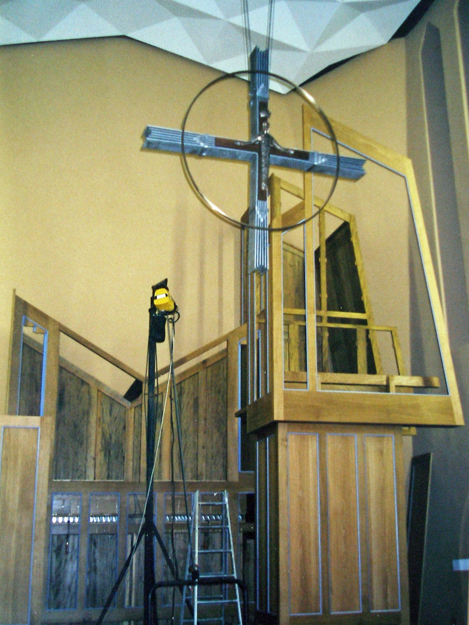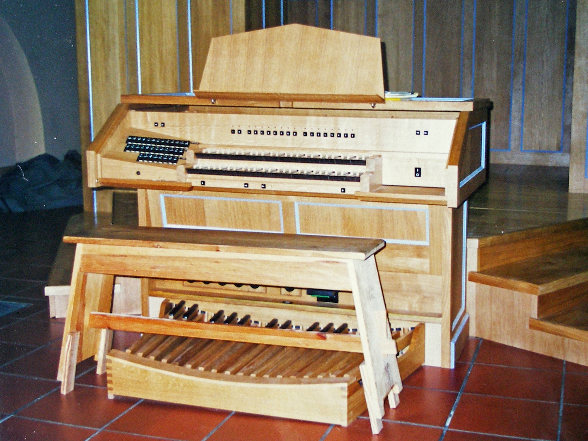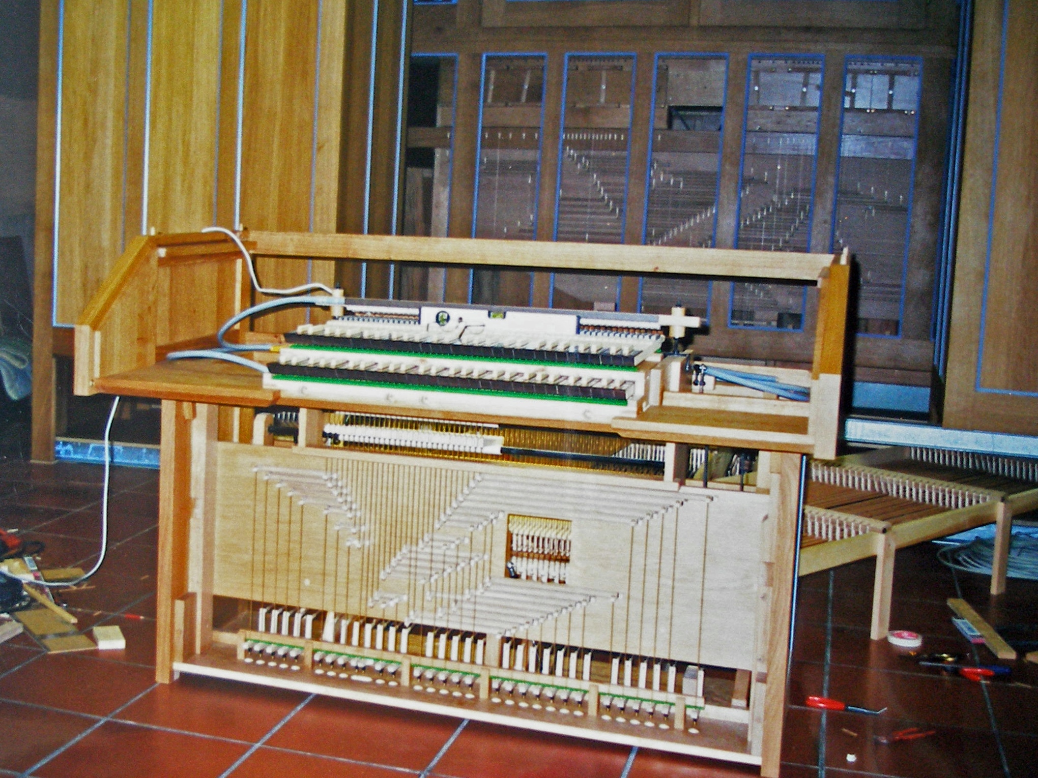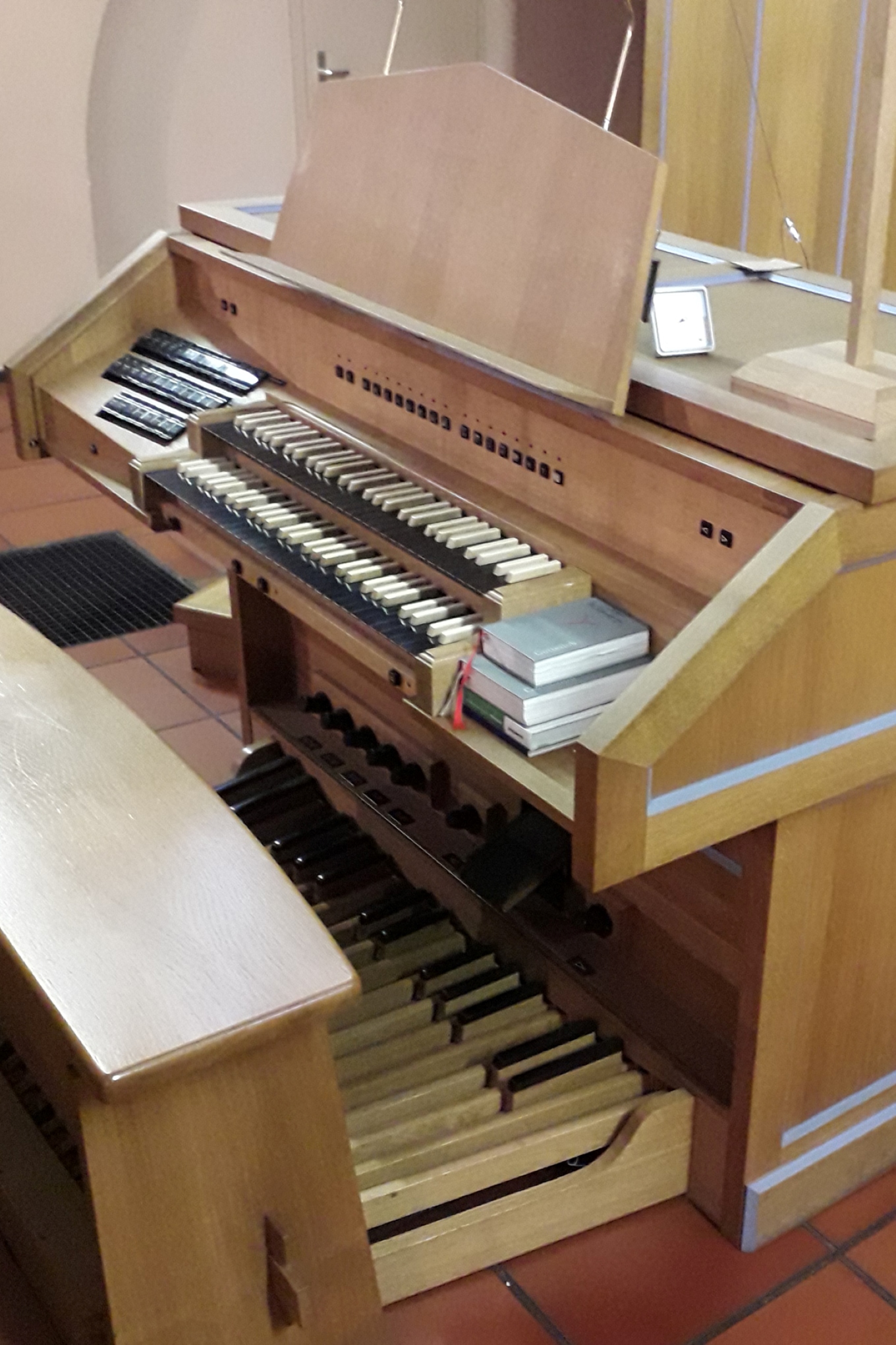 Die Prospektpfeifen der alten Orgel mussten aus Gründen des Denkmalschutzes stehen bleiben. Die Akustik der Kirche erweckt den Eindruck, dass die Orgel immer noch von der Orgelempore ertönt.
